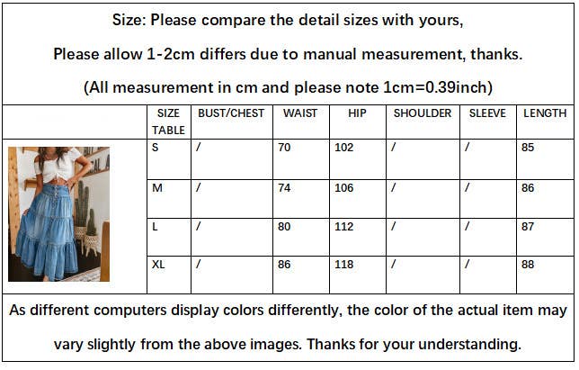 Bohemian Tiered Denim Skirt A-Line