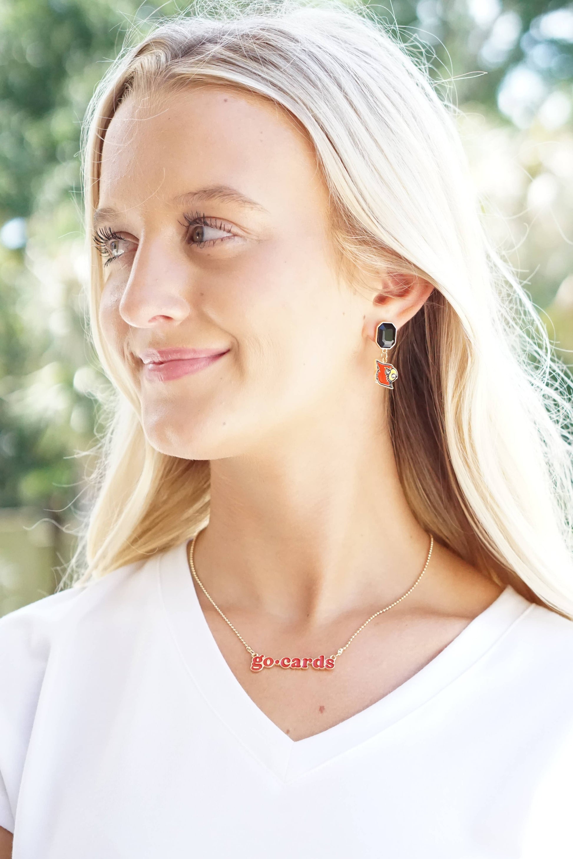 Cardinals Slogan Necklace in Red/Shiny Gold