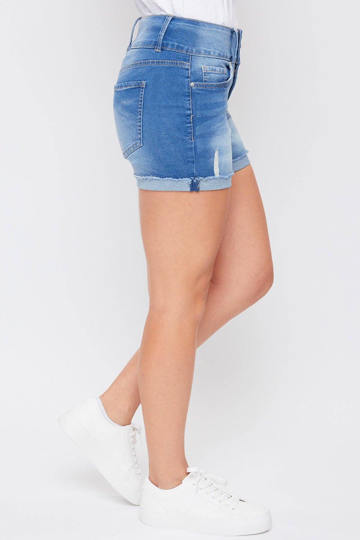 The perfect pair of shorts to add to your wardrobe! Our Basic 3 Button Fray Cuff Shorts gives you the perfect combination of trendy and comfy! Designed with an exposed 3-button design, cuffed hems, and light distressing to add a little edge. Made with a super stretchy and comfortable denim that moves with you throughout the day. Pair these with your favorite tee and sneakers for an easy-going look, or dress them up with a blouse and booties!