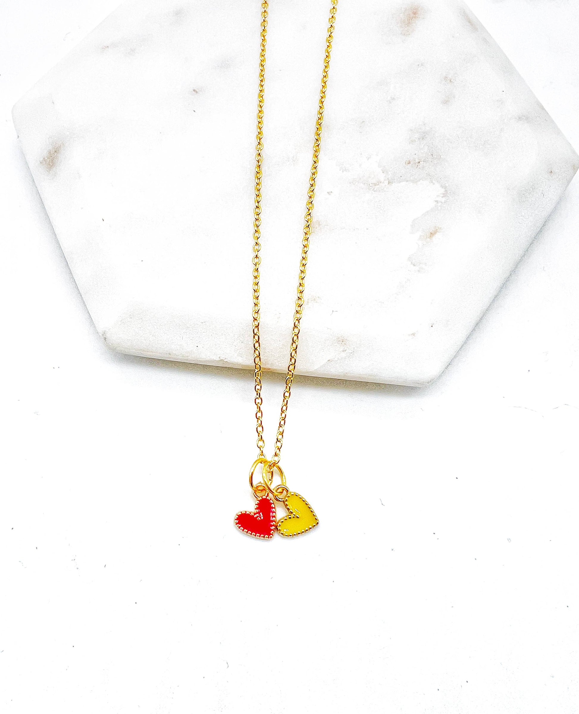 All the heart eyes for this adorable charm necklace! Featuring a bold red and yellow heart charm on a classic chain, itβs the perfect piece to add a pop of color and fun to your outfit.