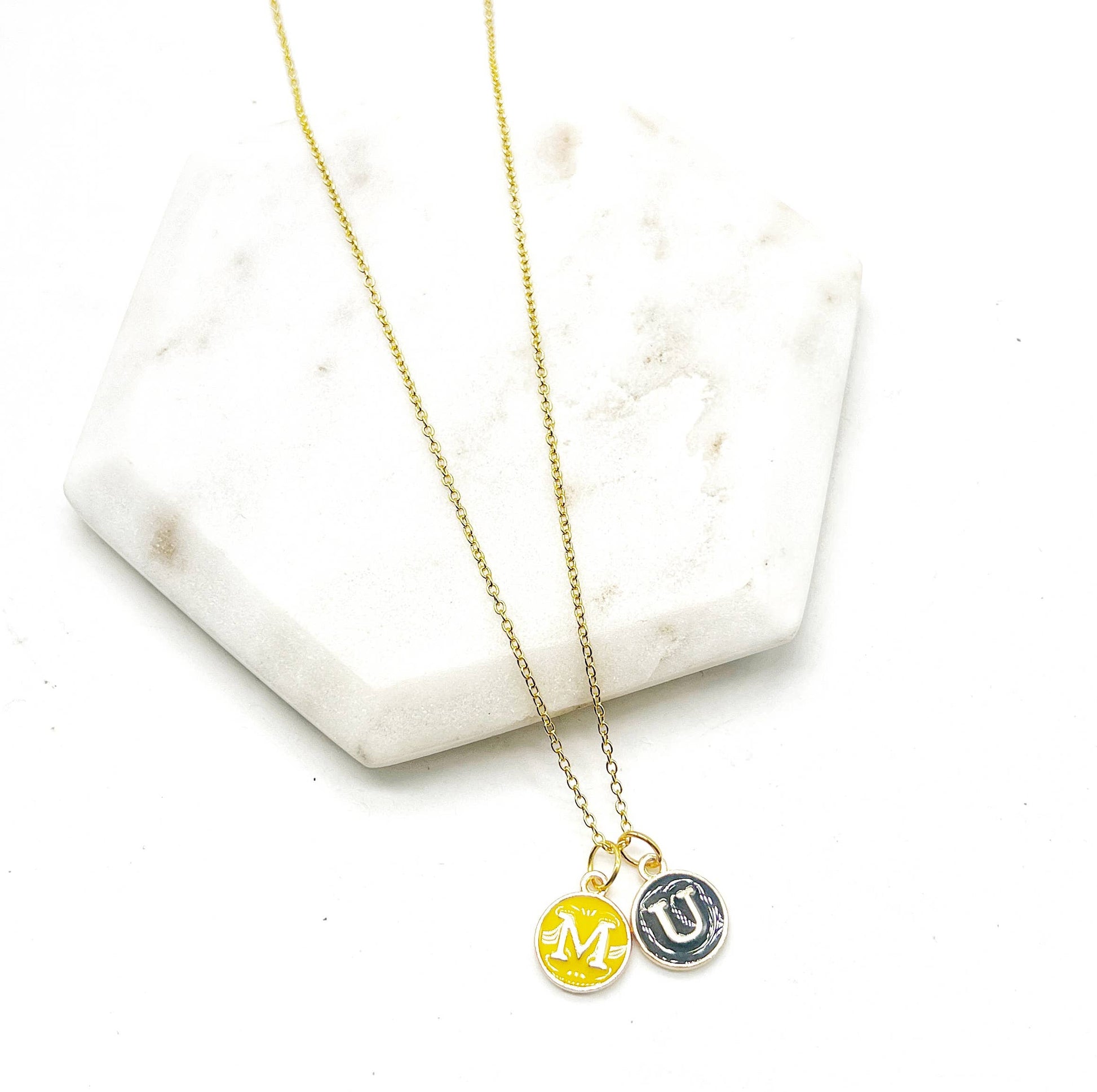 Show your Mizzou pride in style with this sleek MU initial necklace! Featuring the letters M and U on both sides of the charm, itβs the perfect way to rep your Tigers spirit every day.